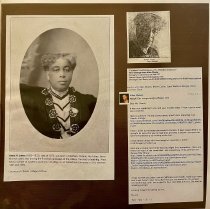 Handwritten entry by Anna for the Oberlin College catalog, stating her teaching experience (only colored woman in her city to be school principal), membership in the National Association of Colored Women and role as President of Missouri State Federation of Colored Women. Photos of Anna. From a scrapbook of family history compiled by Anna H. Jones and Sophia Bethany Jones family descendent Renée Cochée with contributions from Ron Clark.